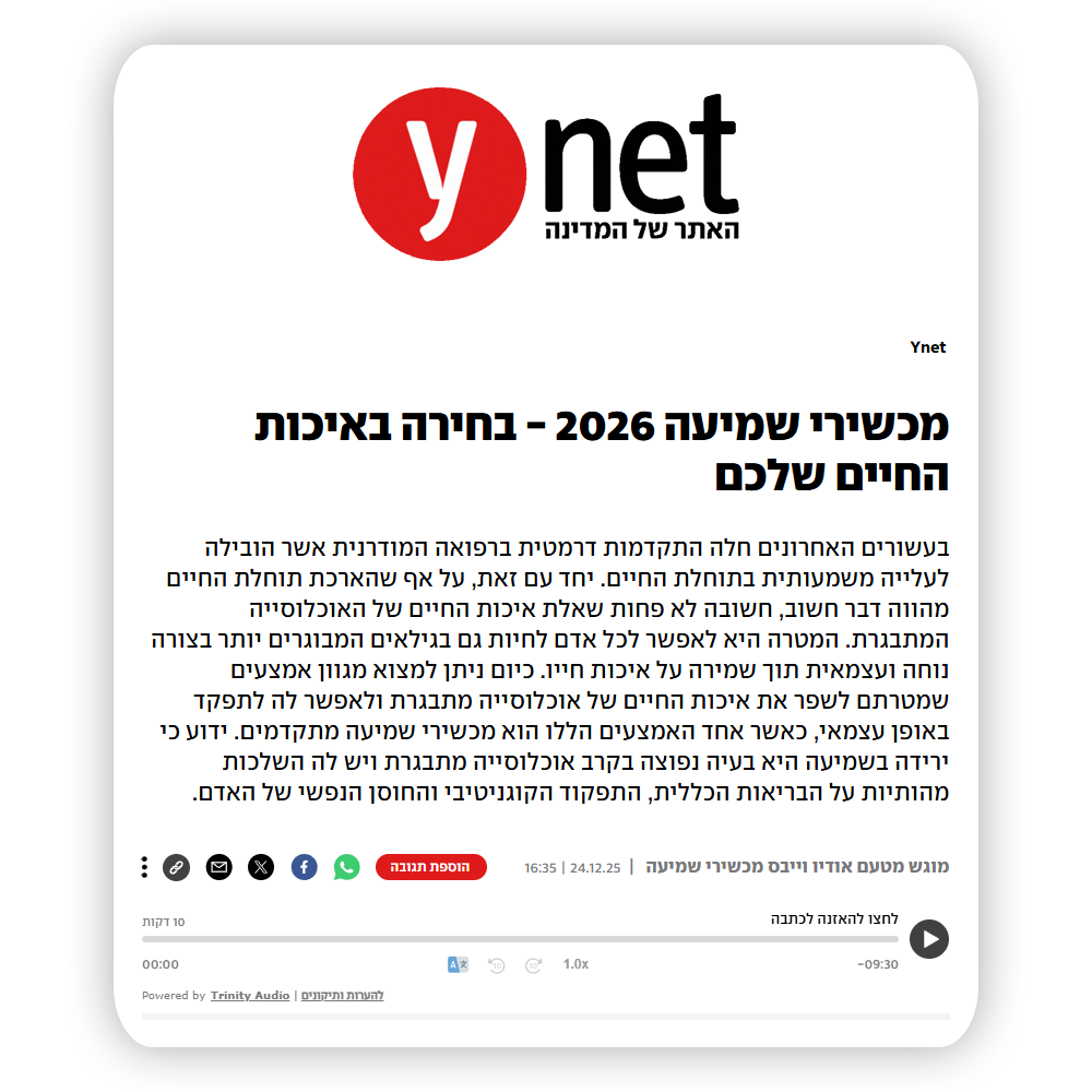 | פריסת תשלומים נוחה | בהתאם למדיניות קופת החולים |